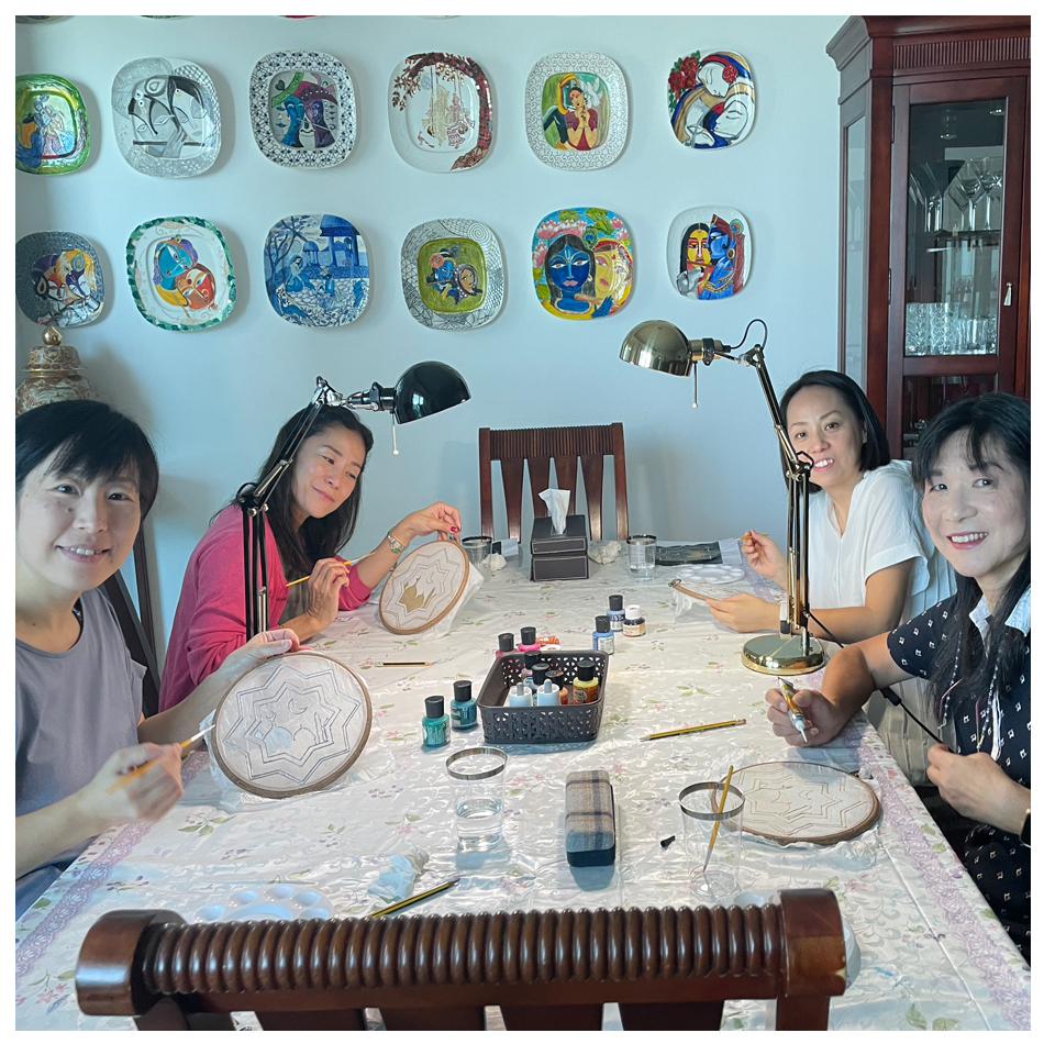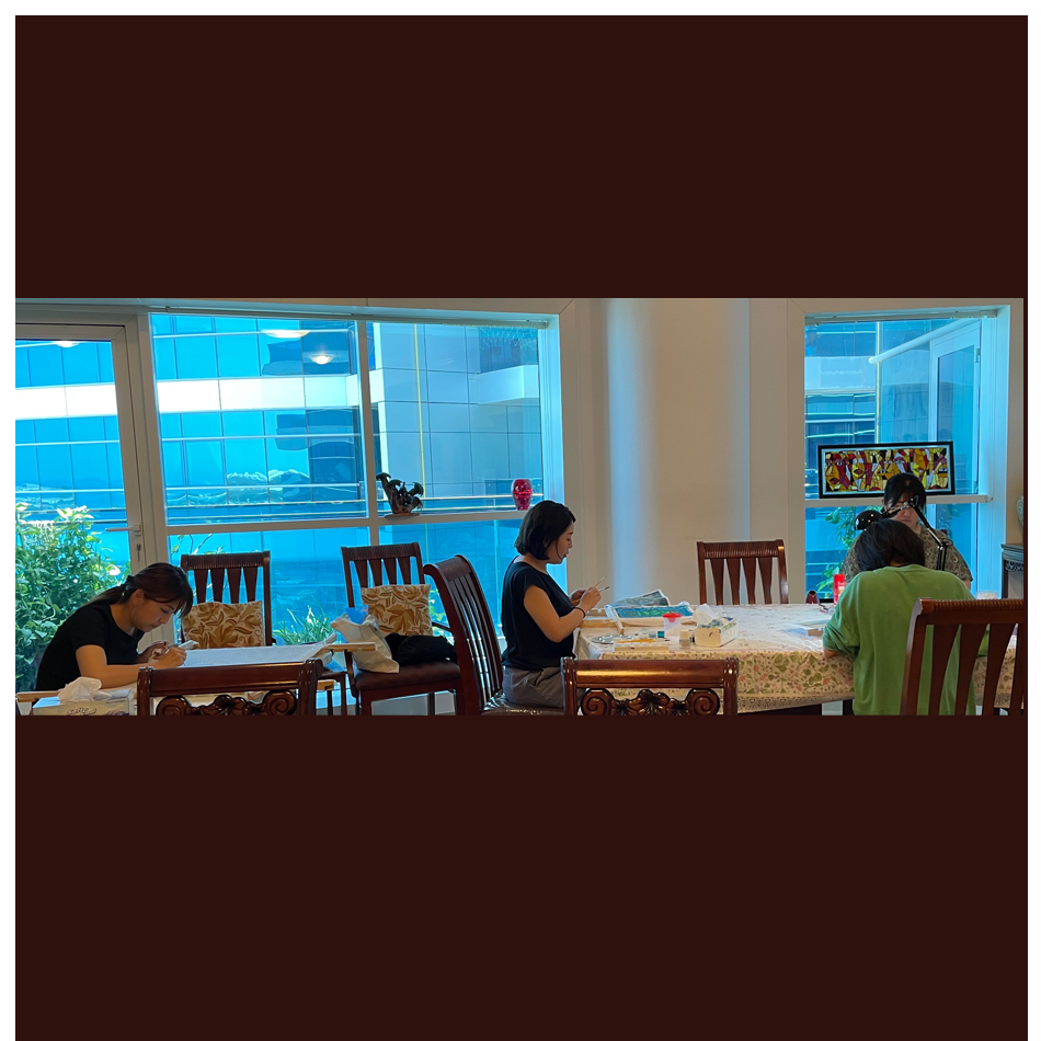 Workshops are held from time to time exclusively for ladies in small groups in a given time frame. All materials are provided. It is a fun way of spending time with friends and going home with a self-created art work in a finished form.